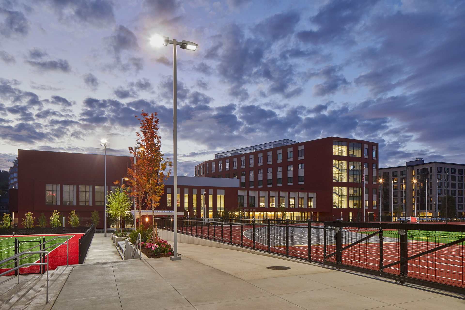 Building a brand-new school on a fully occupied site presented several logistical and coordination challenges. With a tight downtown footprint and an active student body on campus, site access and material deliveries required careful planning. BIM coordination played a critical role in identifying and resolving conflicts early, while our prefab strategies helped accelerate installation and reduce disruption on site. This complex, multi-phase project required close coordination with Hoffman Construction, Bora Architects, and the entire project team to deliver a modern, high-performing learning environment for the Portland Public Schools community.